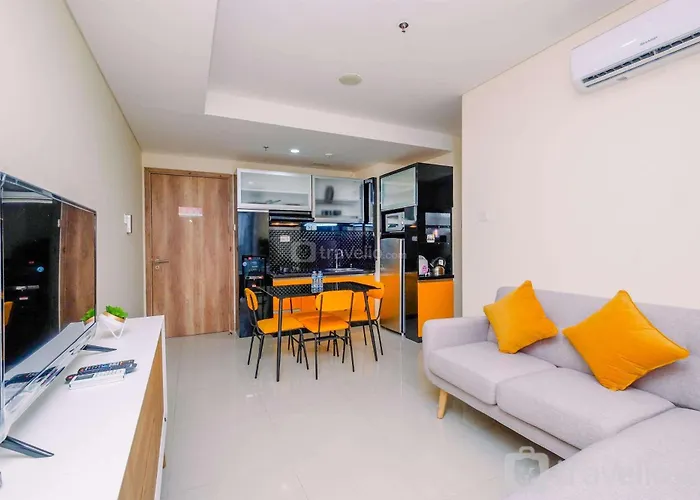 Within Fully Furnished And Homey 1Br Apartment At Pejaten Park Residence By Travelio, there is a kitchen where guests can prepare their own homemade meals. Fully Furnished And Homey 1Br Apartment At Pejaten Park Residence By Travelio is in close proximity to Pejaten bus station.